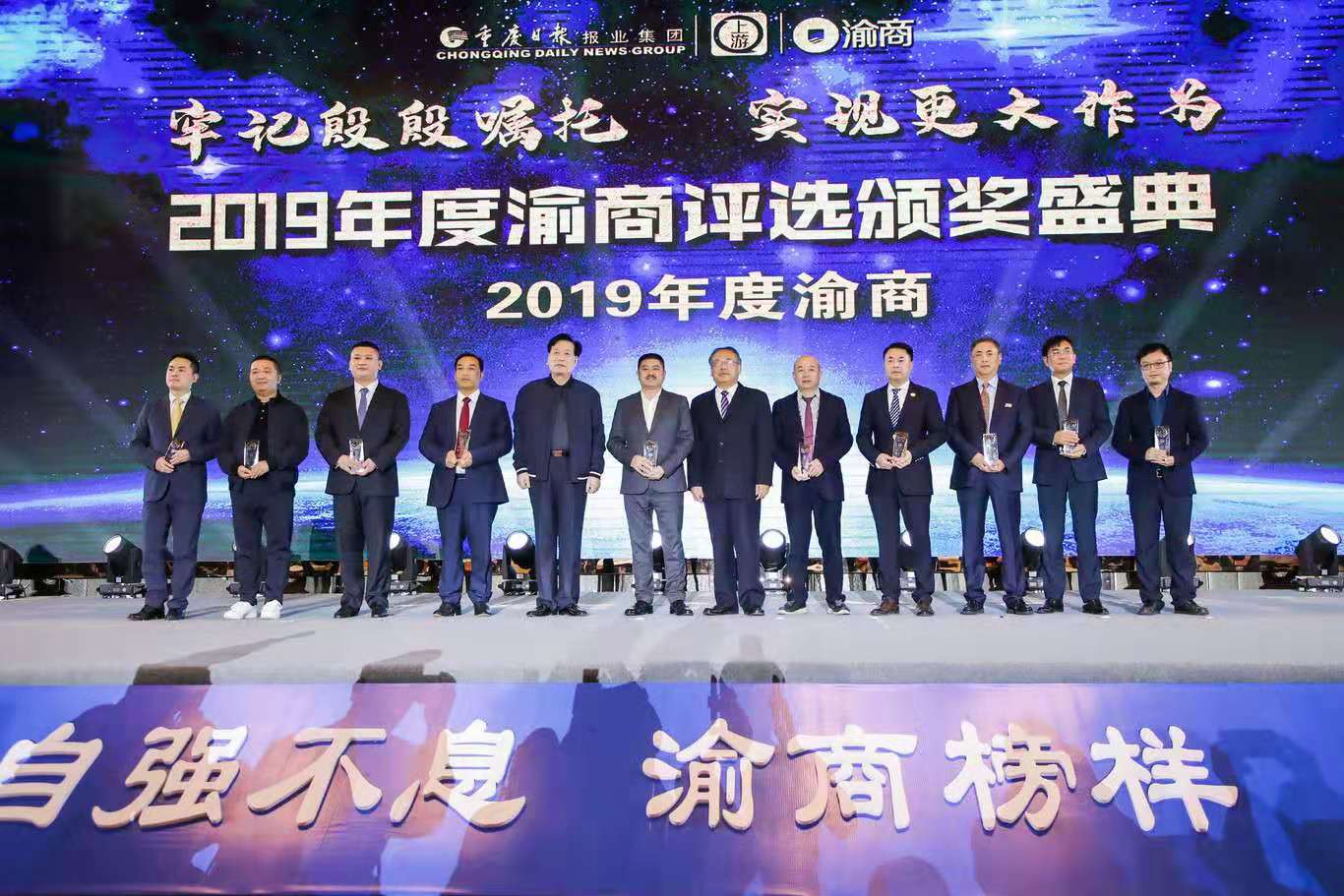 11月3日下午,由北碚区人民政府、重庆日报报业集团、重庆市总商会主办,重报都市传媒集团承办的“渝商产业合作发展交流会暨2019年度渝商、新锐渝商颁奖典礼在北碚隆重举行。作为获奖嘉宾代表,米兰站·官方端网站董事长兼总经理鹿有忠在颁奖典礼上发表了获奖感言。