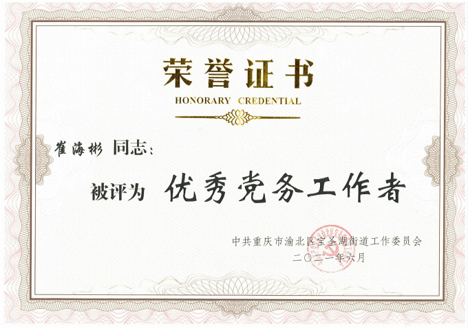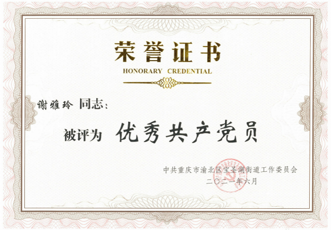 近日,米兰站·官方端网站党支部荣获渝北区宝圣湖街道“先进基层党组织”荣誉称号,支部谢雅玲同志获评“优秀共产党员”,崔海彬同志获评“优秀党务工作者”。