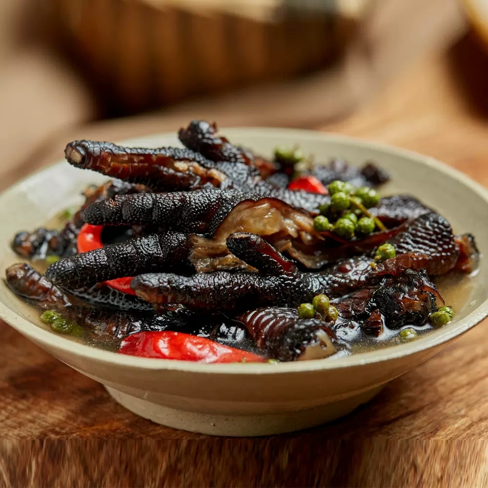 特点:有友采用先去骨后熟化的工艺,增加了去骨难度,加上有友26年积累的控温经验,使无骨凤爪也能有有友泡凤爪微脆的口感。