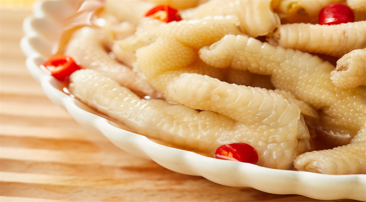 特点:以优质鸡爪为原料, 选用复合乳酸菌种与天然香料,通过人工 控制发酵方法泡制而成。产品色泽美观, 香辣纯正,略带乳酸,鸡肉的鲜香与泡菜 的爽脆相结合,好吃又开胃。